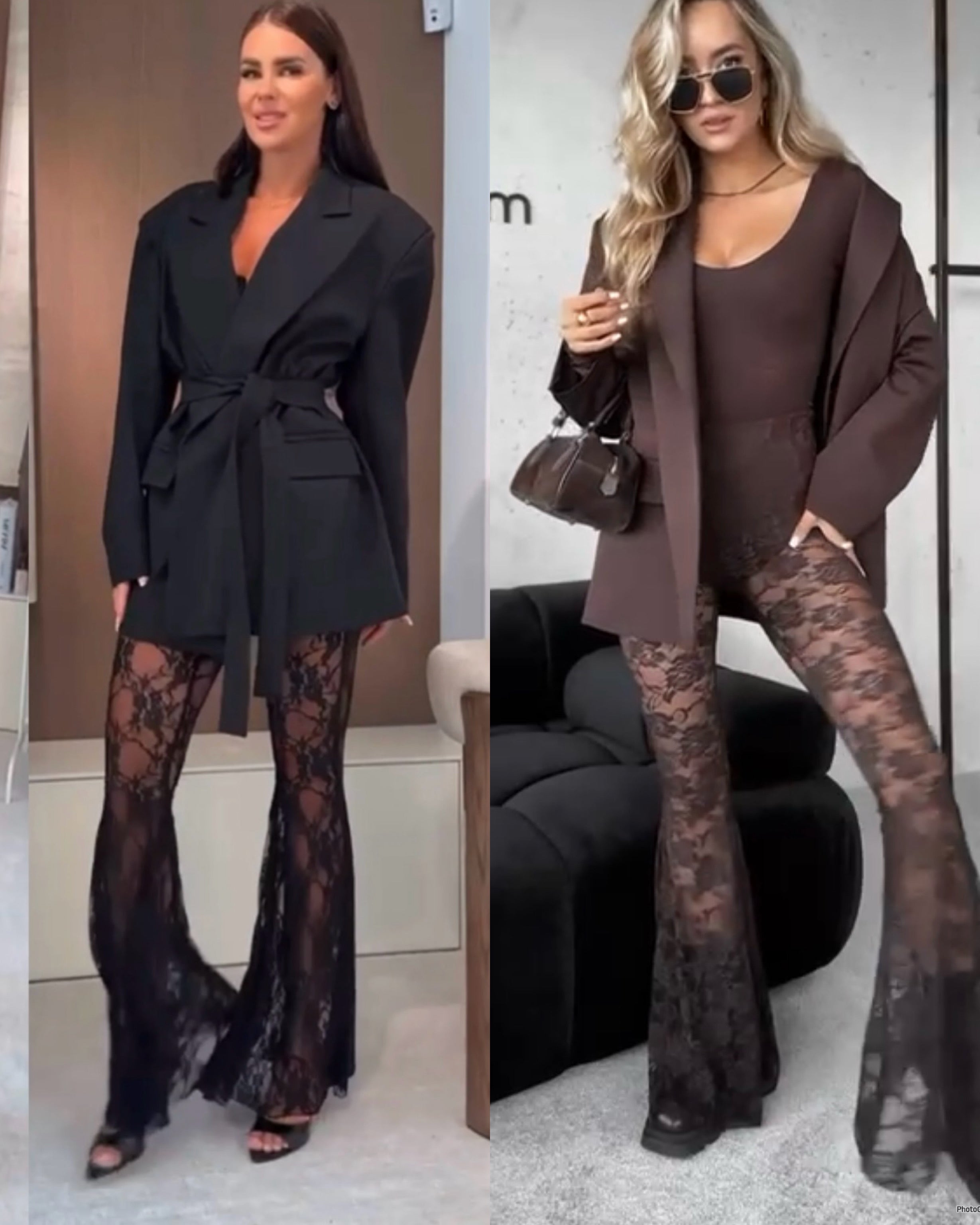 Pantalone a zampa in pizzo più giacca con cintura o variante con giacca con bottoni puoi scegliere tu quale preferisci