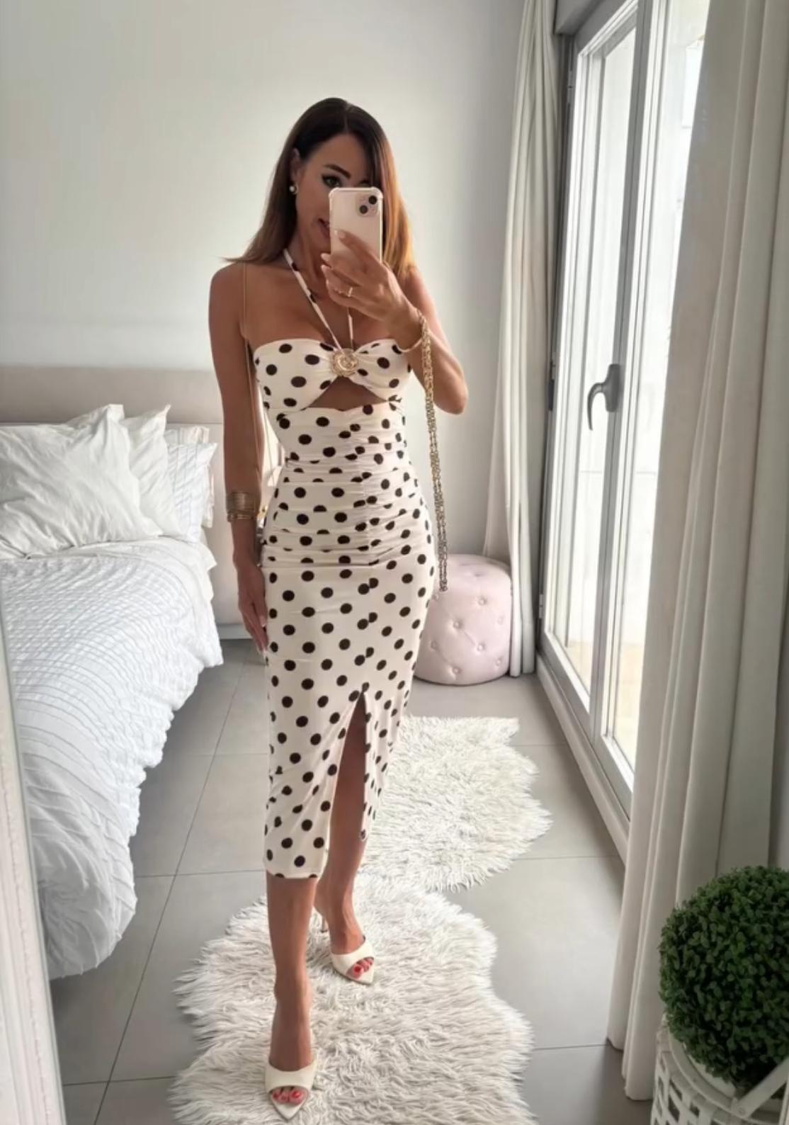 Scopri l’eleganza senza tempo dell’Abito Grecia, caratterizzato da una raffinata fantasia a pois che dona un tocco di vivacità e stile. Perfetto per ogni occasione, questo abito valorizza la tua silhouette con una vestibilità comoda e femminile. Scegli l’Abito Grecia per un look sofisticato che cattura l’attenzione con semplicità e charme.