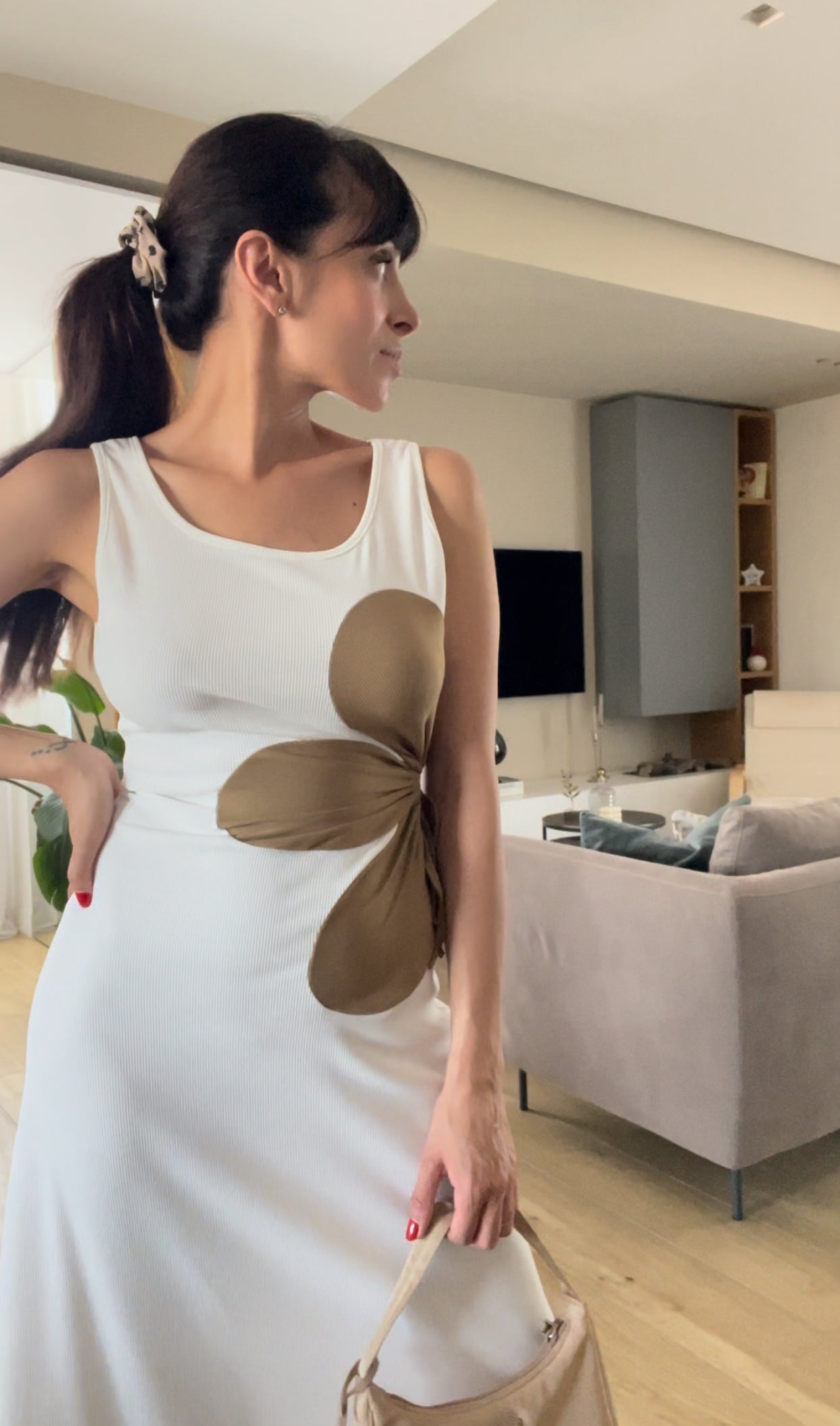 Abito con fiore stupendo in vari colori disponibili la modella indossa la s