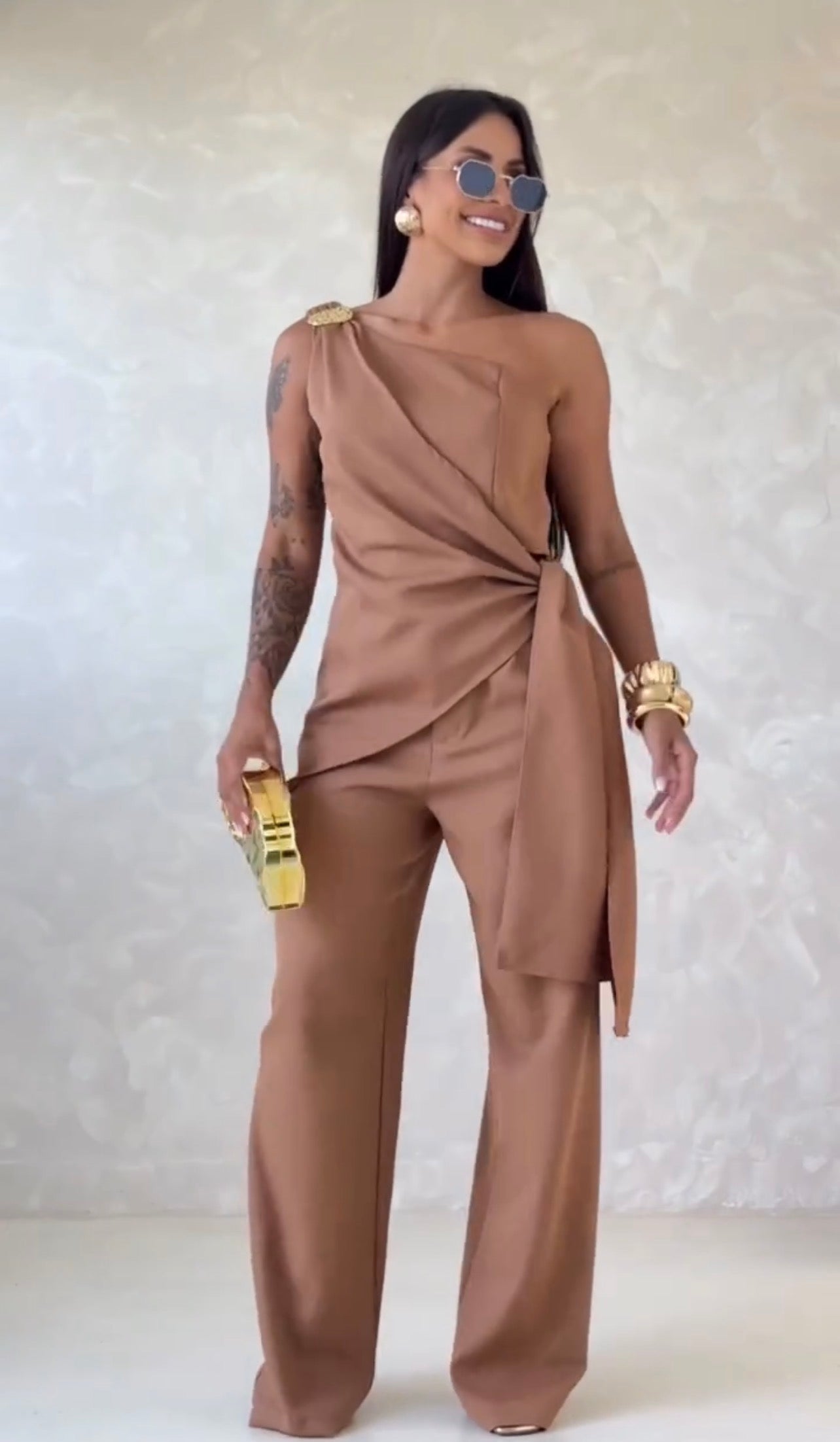 Il Set Billy è un elegante set di due pezzi, completo di una spilla in oro. Questa combinazione non solo offre un aspetto sofisticato, ma grazie ai materiali di alta qualità, garantisce anche una durabilità eccellente. La spilla in oro aggiunge un tocco di classe e raffinatezza, ideale per valorizzare ogni outfit.