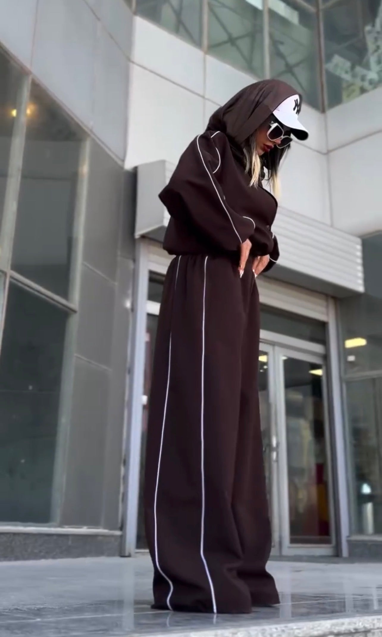 Tuta due pezzi con cappuccio felpata calda in vari colori disponibili